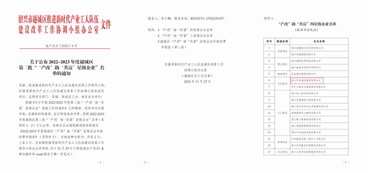 11月27日,越城區(qū)推進(jìn)新時(shí)代產(chǎn)業(yè)工人隊(duì)伍建設(shè)改革工作協(xié)調(diào)小組辦公室公布了2022-2023年度越城區(qū)第二批產(chǎn)改助共富星級(jí)企業(yè),我司榮獲“產(chǎn)改”助“共富”四星級(jí)企業(yè)