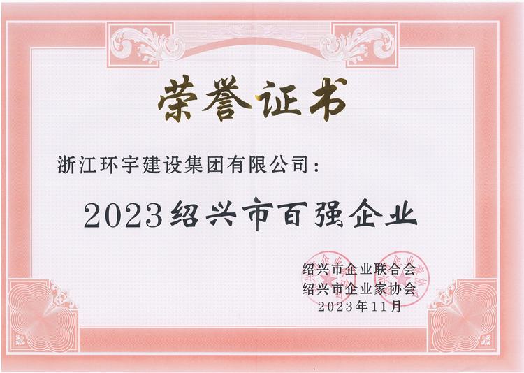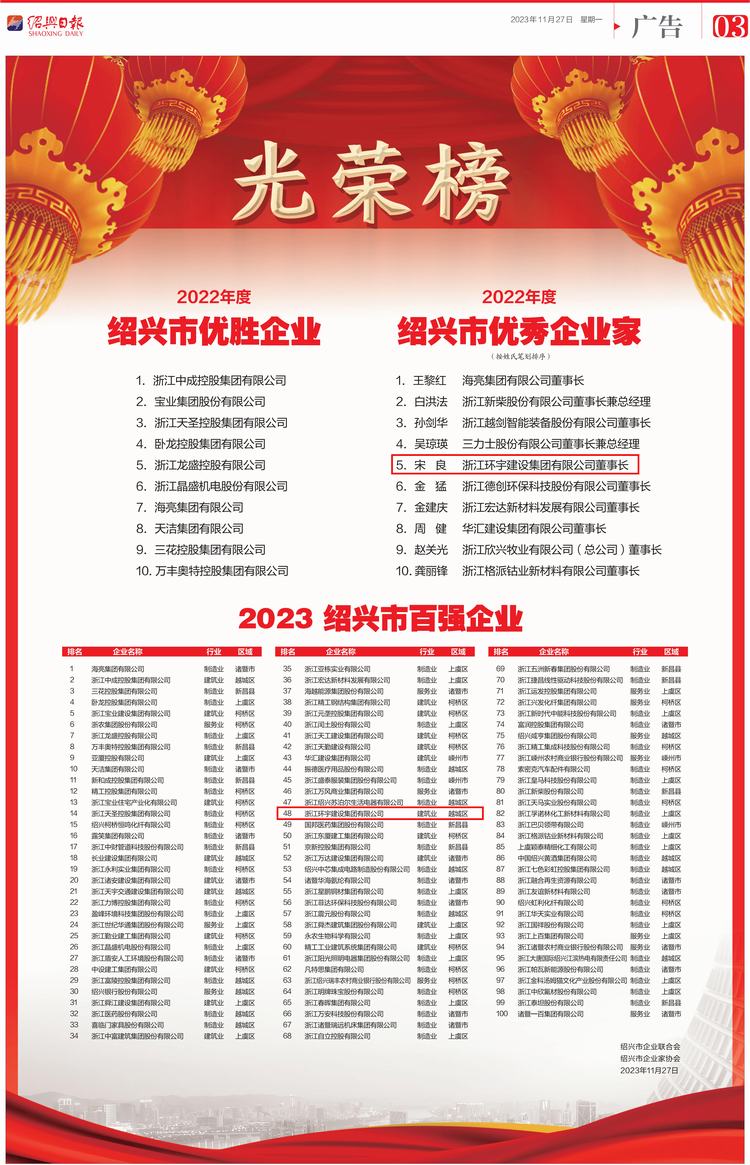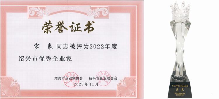 喜訊——環(huán)宇集團(tuán)榮獲2023紹興市百?gòu)?qiáng)企業(yè)、集團(tuán)董事長(zhǎng)宋良榮獲2022年度紹興市優(yōu)秀企業(yè)家稱(chēng)號(hào)
