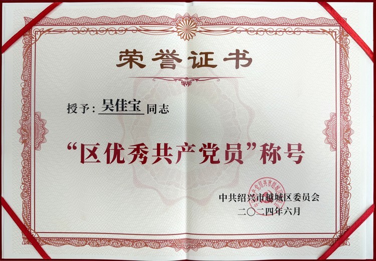 - 環(huán)宇集團(tuán)黨委副書記吳佳寶同志獲評越城區(qū)優(yōu)秀共產(chǎn)黨員 2024-07-02