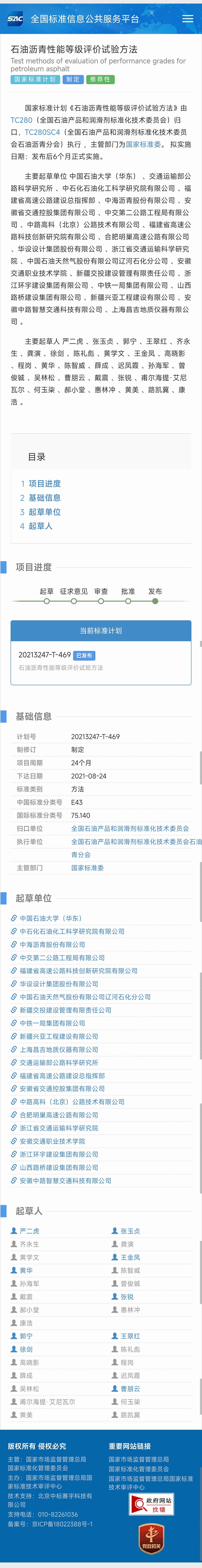 近日,環(huán)宇集團參編的一項《石油瀝青性能等級評價試驗方法》(計劃號20213247-T-469)由國家標準委正式發(fā)布實施。張銳參與編制。