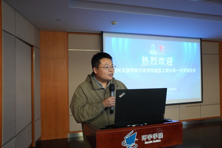 【概要描述】11月27日,紹興文理元培學(xué)院建筑工程分院院長陶紅雨、副院長李明永、副書記鄭國環(huán)、研室主任王旭東等師生一行40余人到訪環(huán)宇集團(tuán)參觀交流。集團(tuán)總經(jīng)理范永祥、總工程師童仙敏、環(huán)宇學(xué)院常務(wù)副院長金立強(qiáng)等領(lǐng)導(dǎo)出席并接待。