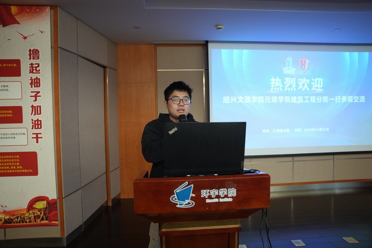 11月27日,紹興文理元培學(xué)院建筑工程分院院長陶紅雨、副院長李明永、副書記鄭國環(huán)、研室主任王旭東等師生一行40余人到訪環(huán)宇集團(tuán)參觀交流。集團(tuán)總經(jīng)理范永祥、總工程師童仙敏、環(huán)宇學(xué)院常務(wù)副院長金立強(qiáng)等領(lǐng)導(dǎo)出席并接待。