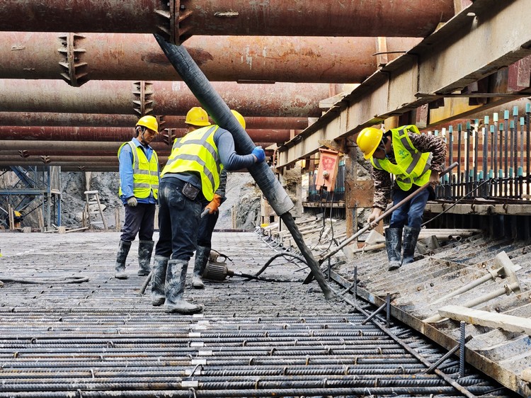 2025年3月19日晚上20時許,隨著最后一聲停泵的鳴笛聲劃破夜空,過江段首塊底板(編號:2-3)澆筑完成,標志著本項目地道主體工程再次提速。本次澆筑過程共耗時8小時,澆筑混凝土790m³。