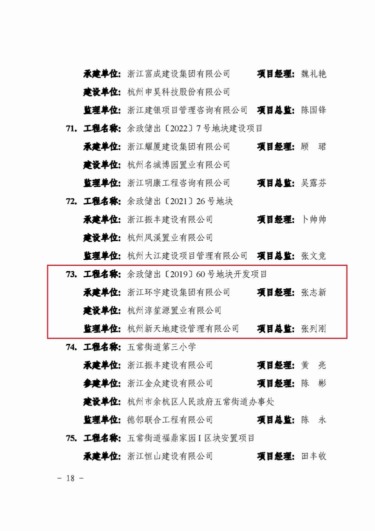 近日,杭州市城鄉(xiāng)建設委員會公布了2024年度杭州市建設工程西湖杯獎(優(yōu)質工程)獲獎工程名單,由我司承建的余政儲出【2019】60號地塊開發(fā)項目和大塘塢農(nóng)貿(mào)市場建設工程兩個項目獲此殊榮。